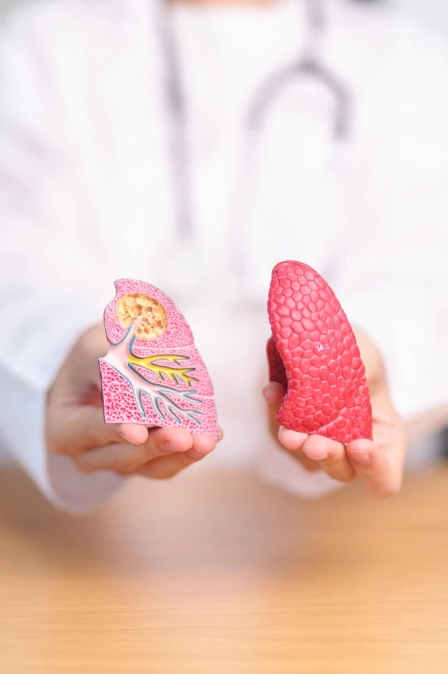 Они могут сдавливать бронхи или раздражать слизистую. Даже при медленном росте опухоль влияет на дыхательные пути. Симптоматика требует контроля у пульмонолога.